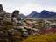 I had briefly toyed with the idea of taking the abandoned road past Kerlingarfjall this time around. However, considering that the condition of this road is unknown and I would likely be all by myself, I quickly decided that this would be foolish. Seeing the wind tug at the rocks at the entrance of the pass confirmed this suspicion and as if to drive the point home, I was pushed off my bike for the first time that day while taking this photo.
